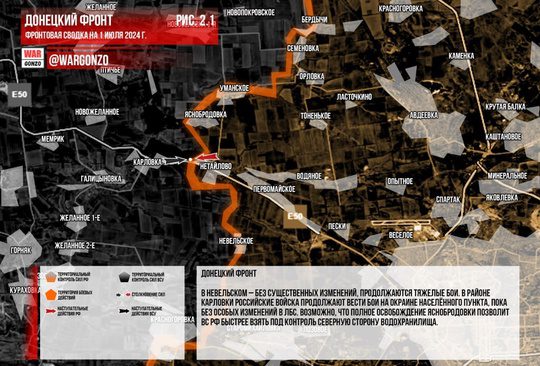 Освобождение Яснобродовки может помочь российским войскам взять под контроль северную сторону водохранилища. В районе западнее Сокола продолжается наступление в направлении населенных пунктов Евгеновка и Восход.