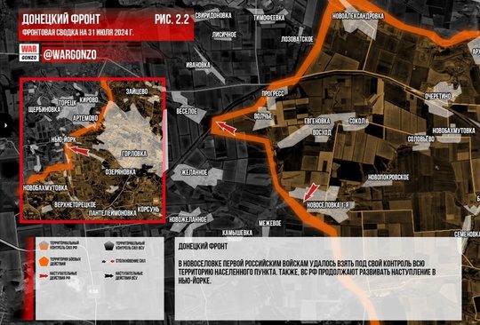 В то же время, на Александро-Калиновском направлении российские войска увеличивают зону контроля в районах Кирово и Артемово, подходя к границам города Дзержинск.