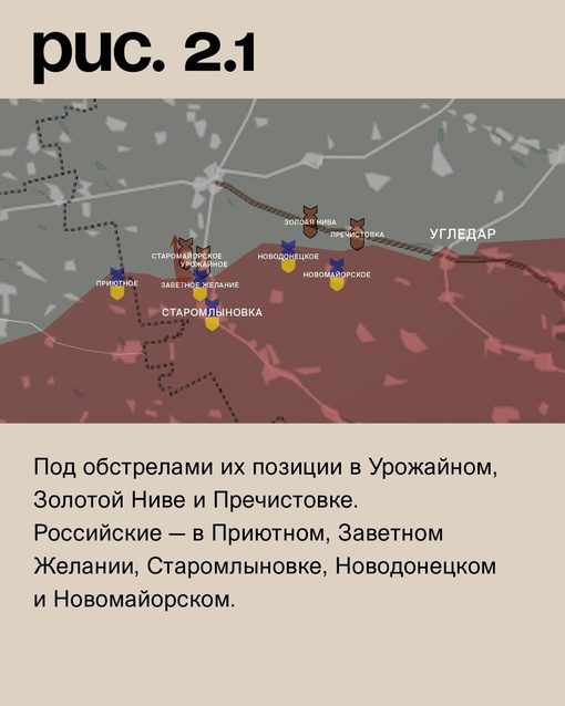 На участке боевых действий в Угледаре, российские вооруженные силы, при поддержке артиллерии, совершили контратаку в направлении Старомайорска. Видимо, украинские вооруженные силы уже заняли позиции в глухой обороне и не пытаются продвигаться вперед. В результате обстрелов, их позиции находятся под огнем в Урожайном, Золотой Ниве и Пречистовке, в то время как российские вооруженные силы занимают позиции в Приютном, Заветном Желании, Старомлыновке, Новодонецком и Новомайорском.