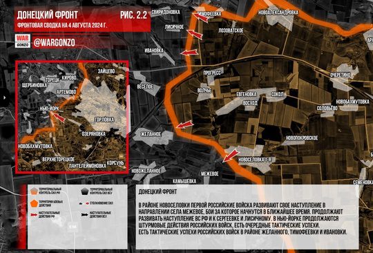 Российские войска демонстрируют тактические успехи в районах Желанного, Тимофеевки и Ивановки, продвигаясь вперед. Одновременно же с этим в Нью-Йорке идут ожесточенные бои, где российские войска добиваются успехов.