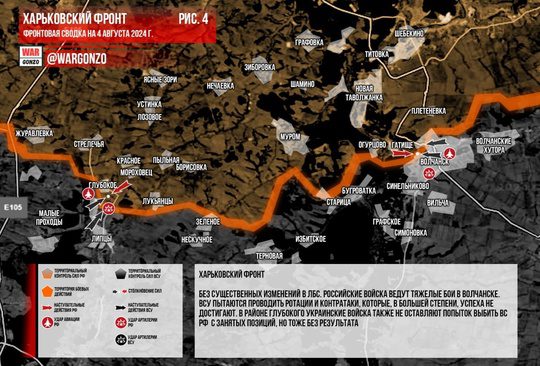 На Харьковском фронте в волчанске российские войска ведут тяжелые бои, сталкиваясь с попытками украинских сил провести контратаки. В районе Глубокого ситуация аналогична — украинские войска пытаются выбить ВС РФ, но безуспешно.