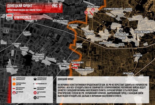Бои на Донецком фронте продолжаются. Российские войска неустанно давят на украинскую оборону, но те не собираются отступать. В Парасковиевке российские силы обезвреживают вражеские позиции на западной окраине. В Красногоровке ВС РФ продолжают добиваться успехов, вытесняя украинские войска к окраинам города.