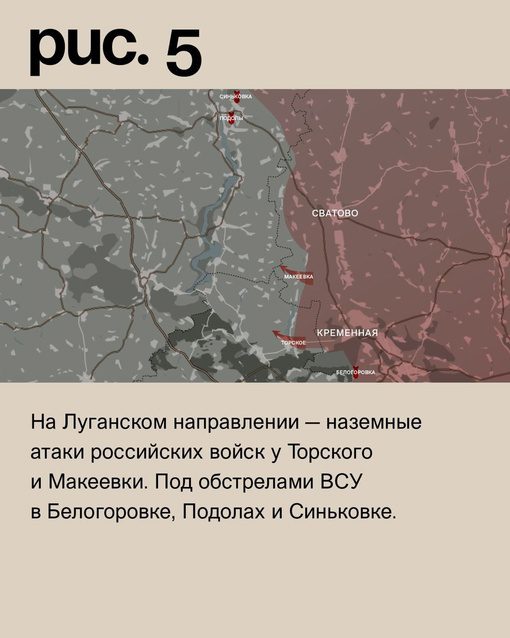 На Луганском направлении российские войска проводят наземные атаки в районе Торского и Макеевки. Под обстрелами со стороны Вооруженных Сил Украины находятся населенные пункты Белогоровка, Подолы и Синьковка.