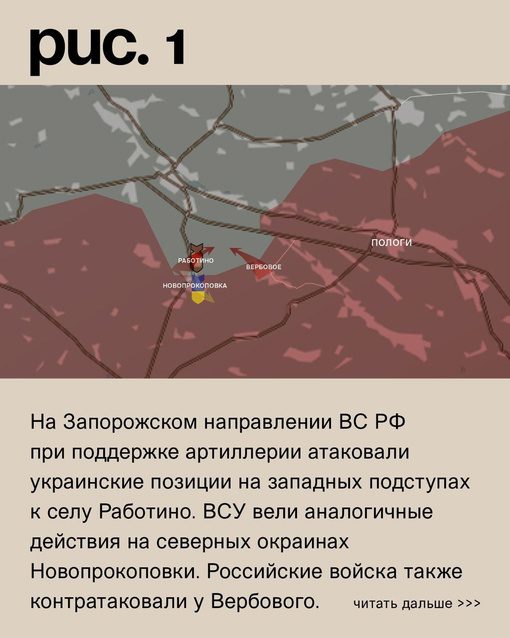 В районе Ореховского участка на Запорожском направлении российская армия активно удерживает оборону у населенных пунктов Копанея и Новопроковка. Кроме того, они осуществляют контратаки со стороны Вербового. На Времевском выступе наши бойцы продвигаются к северу от Приютного.