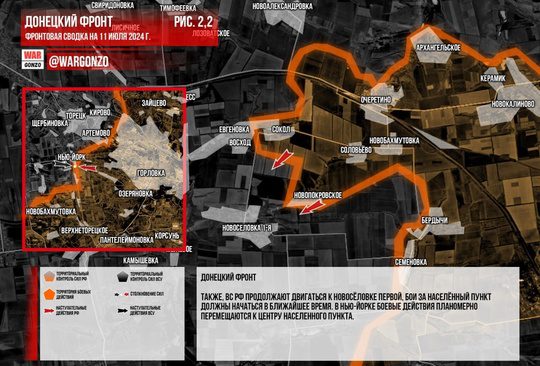 Боевые действия в Нью-Йорке постепенно смещаются к центру города. На Александро-Калиновском направлении продолжаются бои на подступах к Дзержинску (Торецку), где российские войска вытесняют противника со своих позиций. Возникают проблемы также в Дружбе, Кирово и Новгородском.