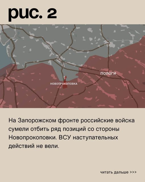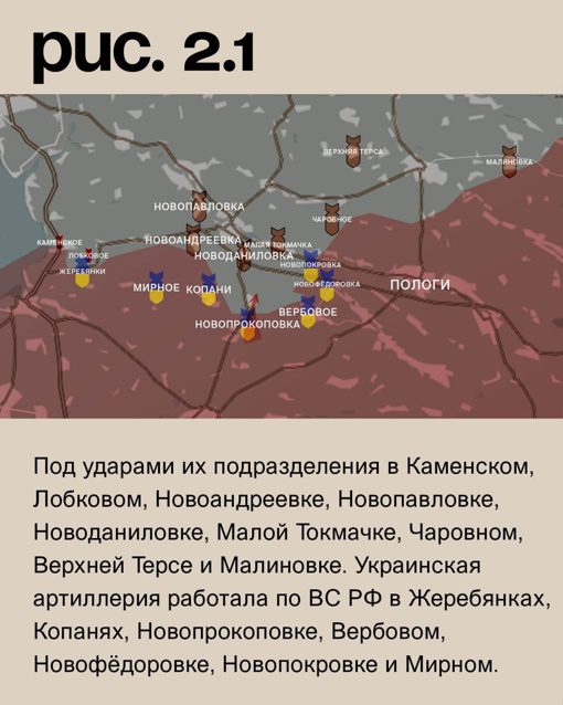 На Запорожском фронте российские войска успешно отбили ряд позиций, противостоящих им со стороны Новопрокоповки. В то же время, украинские военнослужащие не осуществляли наступательных действий. Мы получили удары в Каменском, Лобковом, Новоандреевке, Новопавловке, Новоданиловке, Малой Токмачке, Чаровном, Верхней Терсе и Малиновке. Наша артиллерия нанесла удары по российским войскам в Жеребянках, Копанях, Новопрокоповке, Вербовом, Новофёдоровке, Новопокровке и Мирном.
