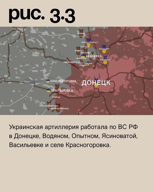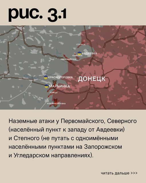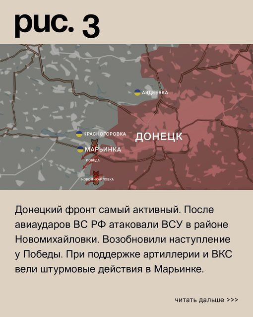 Самый активный фронт — Донецкий. После авиаударов ВС РФ, ВСУ атаковали в районе Новомихайловки. Также возобновили наступление у Победы и вели штурмовые действия в Марьинке при поддержке артиллерии и ВКС. Наземные атаки произошли у Первомайского, Северного и Степного. В Константиновке, Авдеевке, Ласточкине, Орловке и Керамике были нанесены массированные удары ВСУ. Украинская артиллерия работала по целям ВС РФ в Донецке, Водяном, Опытном, Ясиноватой, Васильевке и селе Красногоровка.
