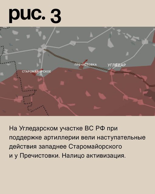 На Угледарском участке российские войска с артиллерийской поддержкой проводили наступательные действия западнее Старомайорского и у Пречистовки. Их активность стала очевидной.