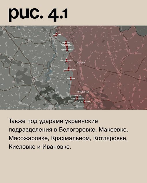 На направлении Сватово-Кременное продолжаются бои в районе Синьковки и Петропавловки. Наши бойцы также атакуют к западу от Новоселовского. В то же время, русская армия отражает наступления ВСУ к западу от Кременной.