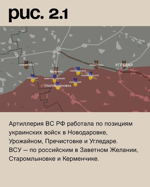 На запорожском направлении, на Ореховском участке наши бойцы не позволили украинским военнослужащим прорваться между Работино и Вербовым. На Времевском выступе ВСУ не удалось прорваться к востоку от Старомлыновки.