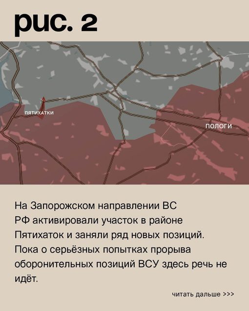 На Запорожском направлении российские военные активизировались в районе Пятихаток и заняли новые позиции. Однако, пока не было серьезных попыток прорыва оборонительных позиций украинских вооруженных сил.