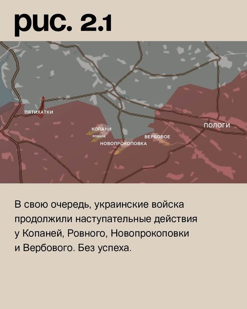 С другой стороны, украинские войска продолжают наступление в районах Копаней, Ровного, Новопрокоповки и Вербового, но безуспешно.