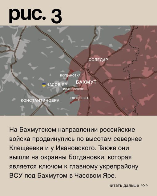 Российские войска заняли новые позиции в районе Авдеевской промышленной зоны на юго-востоке украинских укрепрайонов. Они также атаковали завод по производству кокса и химическому производству к северо-востоку, а также населенные пункты Степное и Новокалиново. Здесь ситуация с линией боевого столкновения существенно не изменилась.