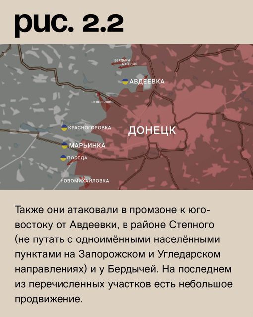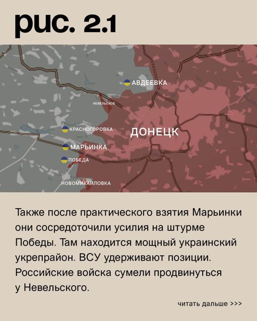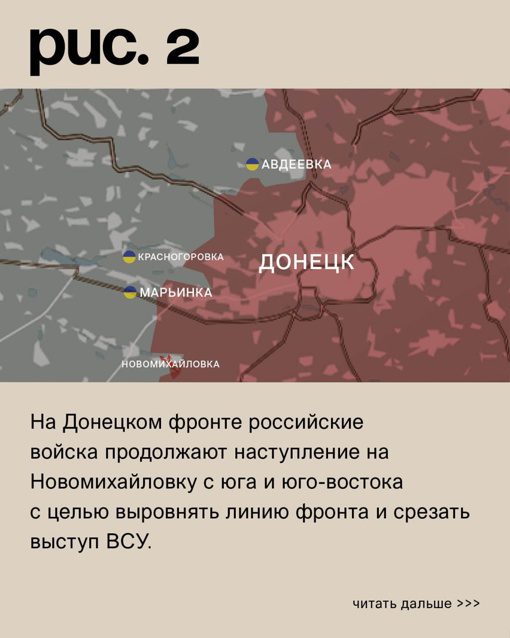 Тем временем Марьинка почти полностью освобождена от украинских сил. Контроль над городом у противника остался на площади около 1%. Чтобы полностью освободить город, требуется очистить еще территорию, на которой находится сельскохозяйственное предприятие, и дойти до конца улицы Ивана Франко.