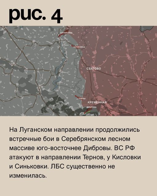 В данный момент российские войска активно наступают на нескольких направлениях. На Купянском участке войска РФ пытаются прорваться через оборонительные рубежи украинских сил на севере Синьковки и на линии Загоруйковка, Тимковка, Ивановка, Кисловка.