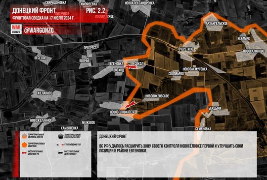 На другом направлении, российские самолеты взяли под контроль центр Новоселовки Первой, где уже проходит очистка от врага. Российские войска продолжают прогрессировать на Торецкую агломерацию, атакуя южный фланг украинских сил.