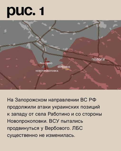 На Запорожском направлении наши бойцы атакуют ВСУ в районе Работино на Ореховском участке. Противник также попытался атаковать у Вербового.