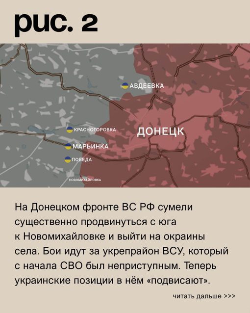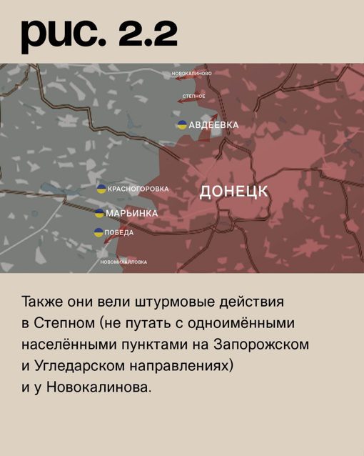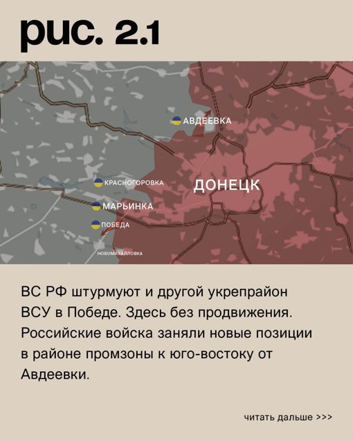 Бои происходят за укрепленную зону Вооруженных Сил Украины (ВСУ), которая ранее была неприступной. Теперь украинские позиции в этом районе ослабели. Войска РФ также атакуют другую укрепленную зону ВСУ в Победе, но пока без успеха.