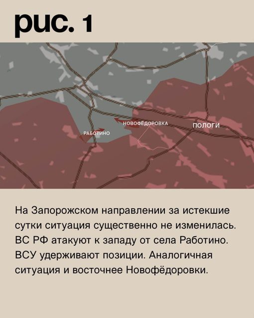 В районе Работино на Ореховском участке продолжаются бои между русской армией и украинскими силами. Военнослужащие Украины пытаются продвинуться, встречая сопротивление со стороны ВС РФ. Возможны бои и в районе Вербового.