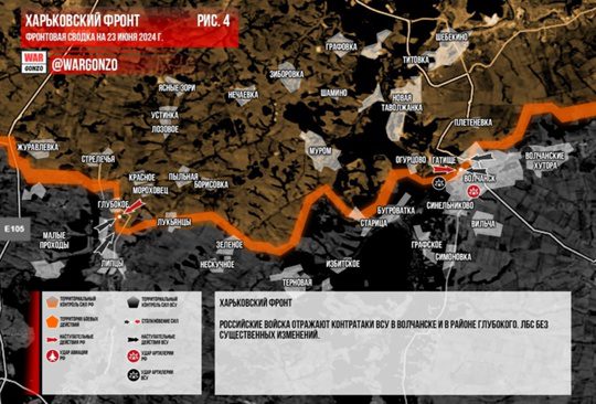 На Слобожанском направлении вооруженные силы России успешно отражают контратаки противника в Волчанске и на подступах к Глубокому. Несмотря на численное превосходство, украинским вооруженным силам не удается изменить обстановку в свою пользу.