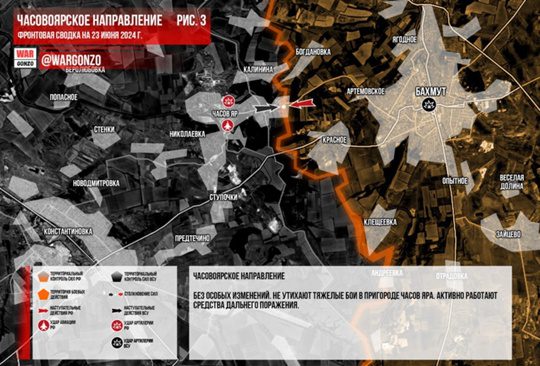 Часовоярское направление остается без значительных изменений. Бои продолжаются в пригороде Часов Яра, с активным применением средств дальнего поражения.