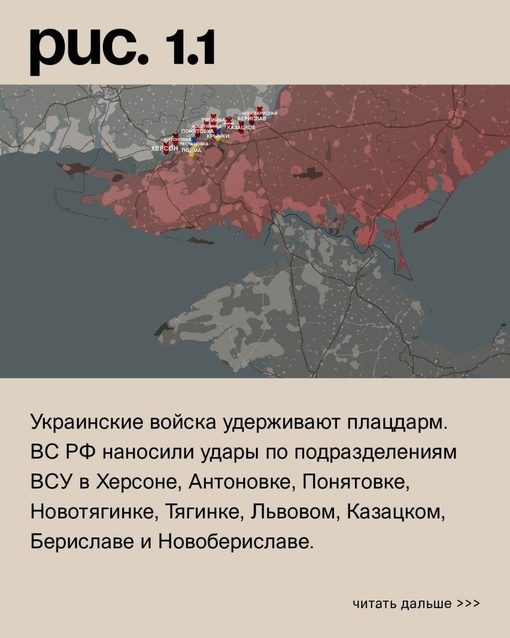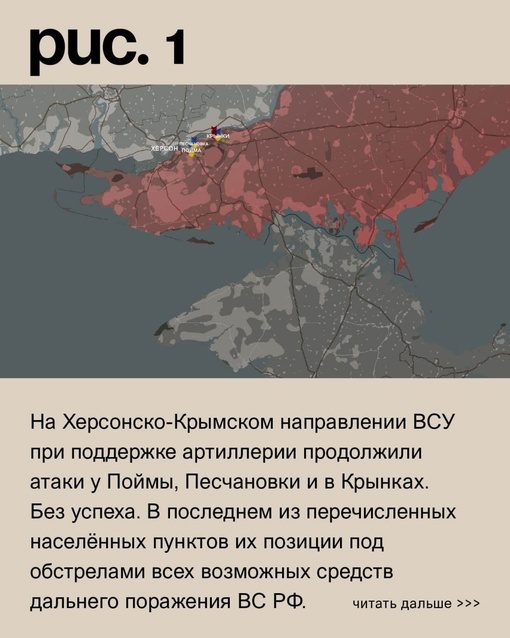 На Херсонском направлении противник до сих пор удерживает плацдарм в центре села Крынки на левом берегу Днепра. Несмотря на активные огневые удары со стороны нашей авиации и артиллерии, Вооруженные Силы Украины все еще удерживают свои позиции. Они понесли значительные потери, но не сдаются.