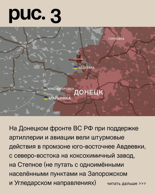 Наше войско на Донецком фронте вело атаку на промзону южнее Авдеевки. При этом была задействована артиллерия и авиация. Наша цель — захватить коксохимический завод, Степное и Новобахмутовку, которые находятся под контролем украинских войск.